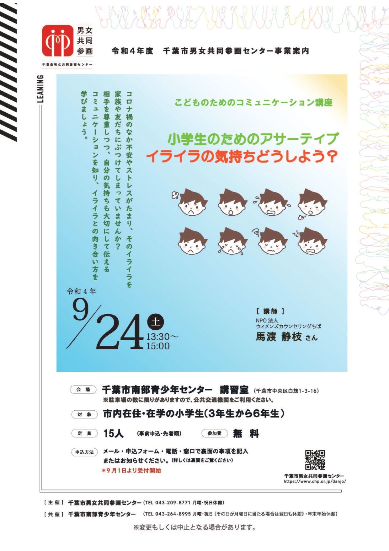 こどものためのコミュニケーション講座「小学生のためのアサーティブ」