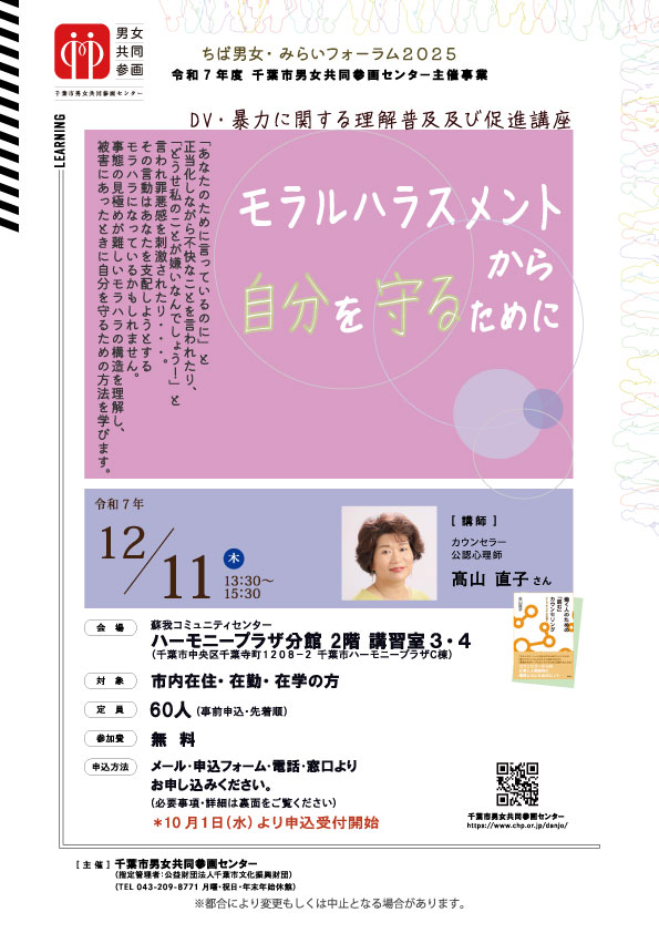 DV・暴力に関する理解普及及び促進講座「モラルハラスメントから自分を守るために」