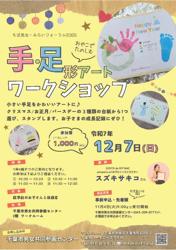 親子のふれあい事業 「おやこで楽しむ、手・足形アートワークショップ」