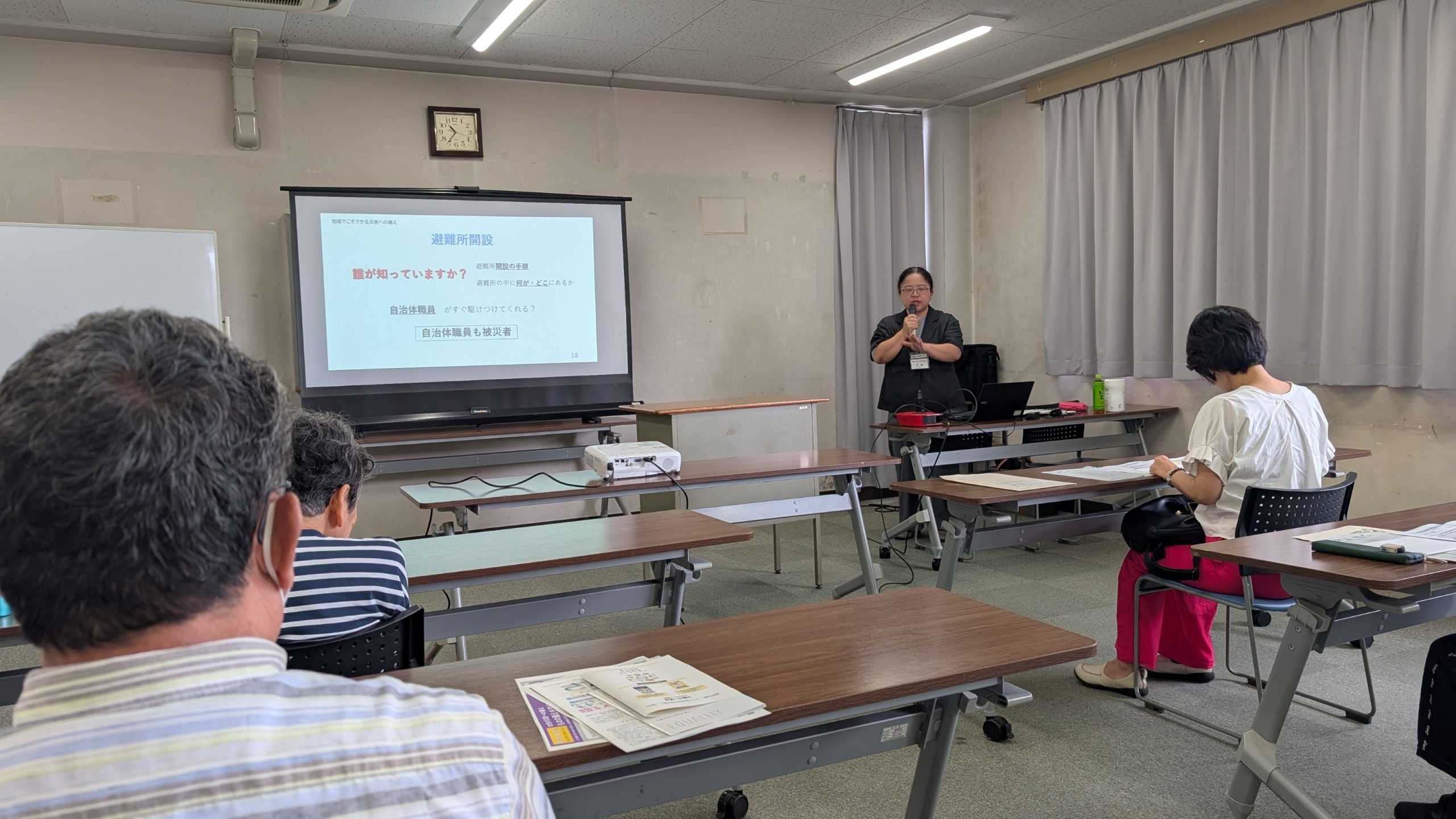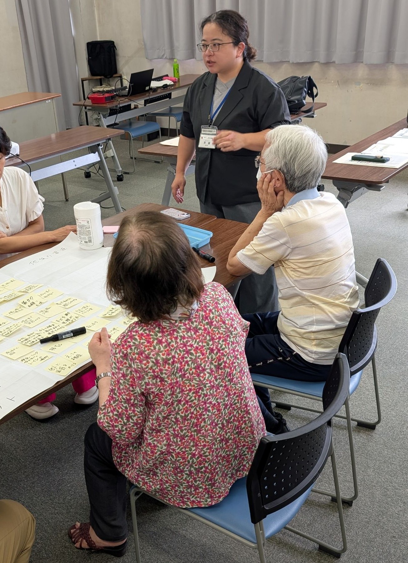 | 実施報告 | 防災公開講座@磯辺公民館を実施 参加者みなさんが講義にグループワークにと熱心に参加されていました。 「一方的な座学だけでなくグループワークもあったので自分事として考える機会に」 「自分も避難場所でできることがたくさんあると思う」 「自分の地域でやりたい」 といった感想をいただきました。 |