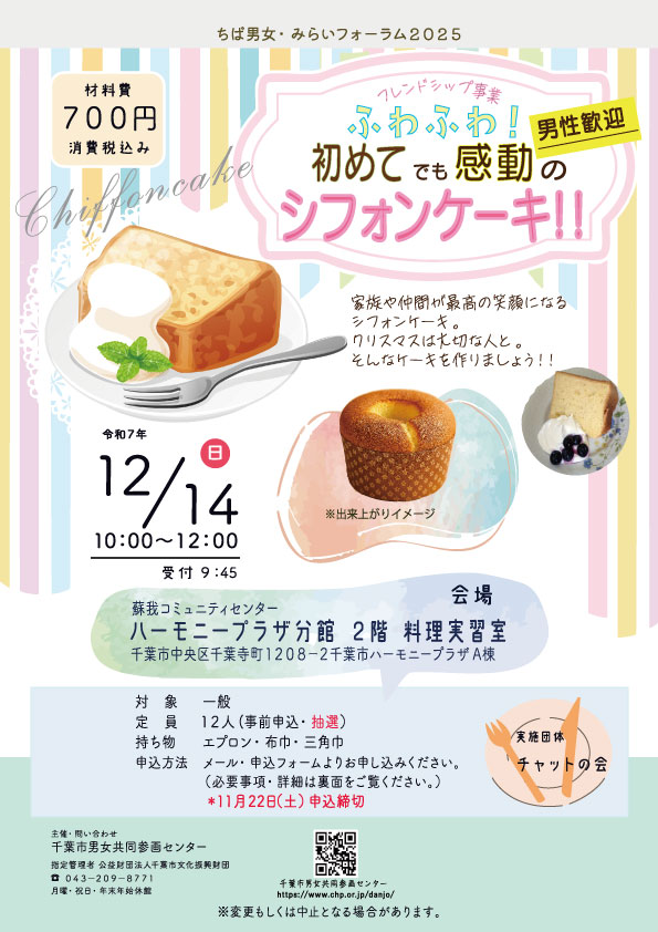 イベントフレンドシップ事業 ふわふわ! 初めてでも感動のシフォンケーキ!! <ちば男女・みらいフォーラム2025>