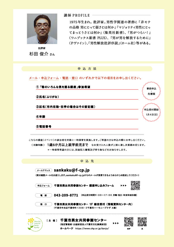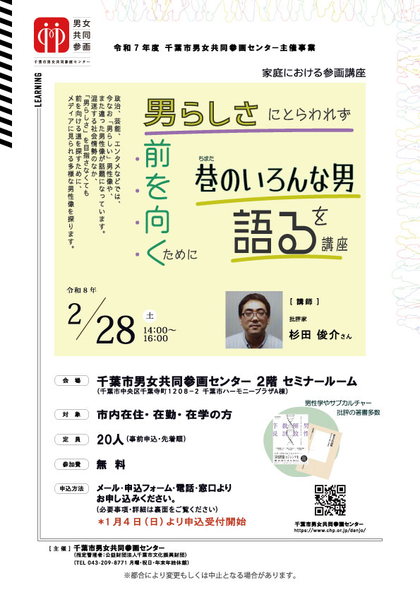 家庭における参画講座「男らしさにとらわれず前を向くために 巷のいろんな男を語る講座」