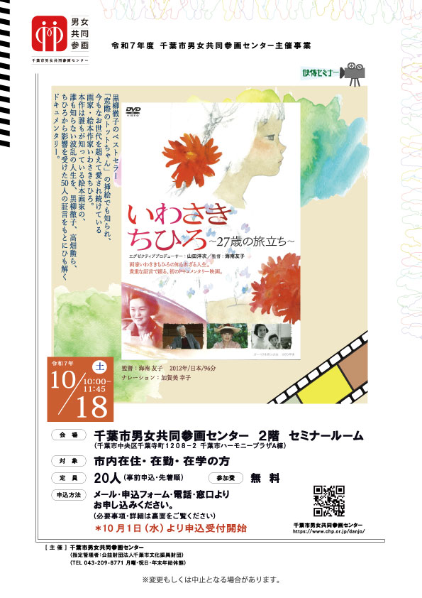 主催・問い合わせ | 千葉市男女共同参画センター TEL:043-209-8771(休館日:月曜、祝日、年末年始) |