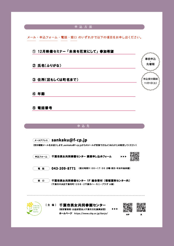 ちば男女・みらいフォーラム2025 《女性参政権80周年特別上映》映像セミナー「未来を花束にして」 <千葉市男女共同参画週間関連事業>
