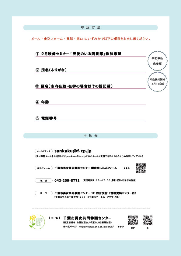 主催・問い合わせ 千葉市男女共同参画センター