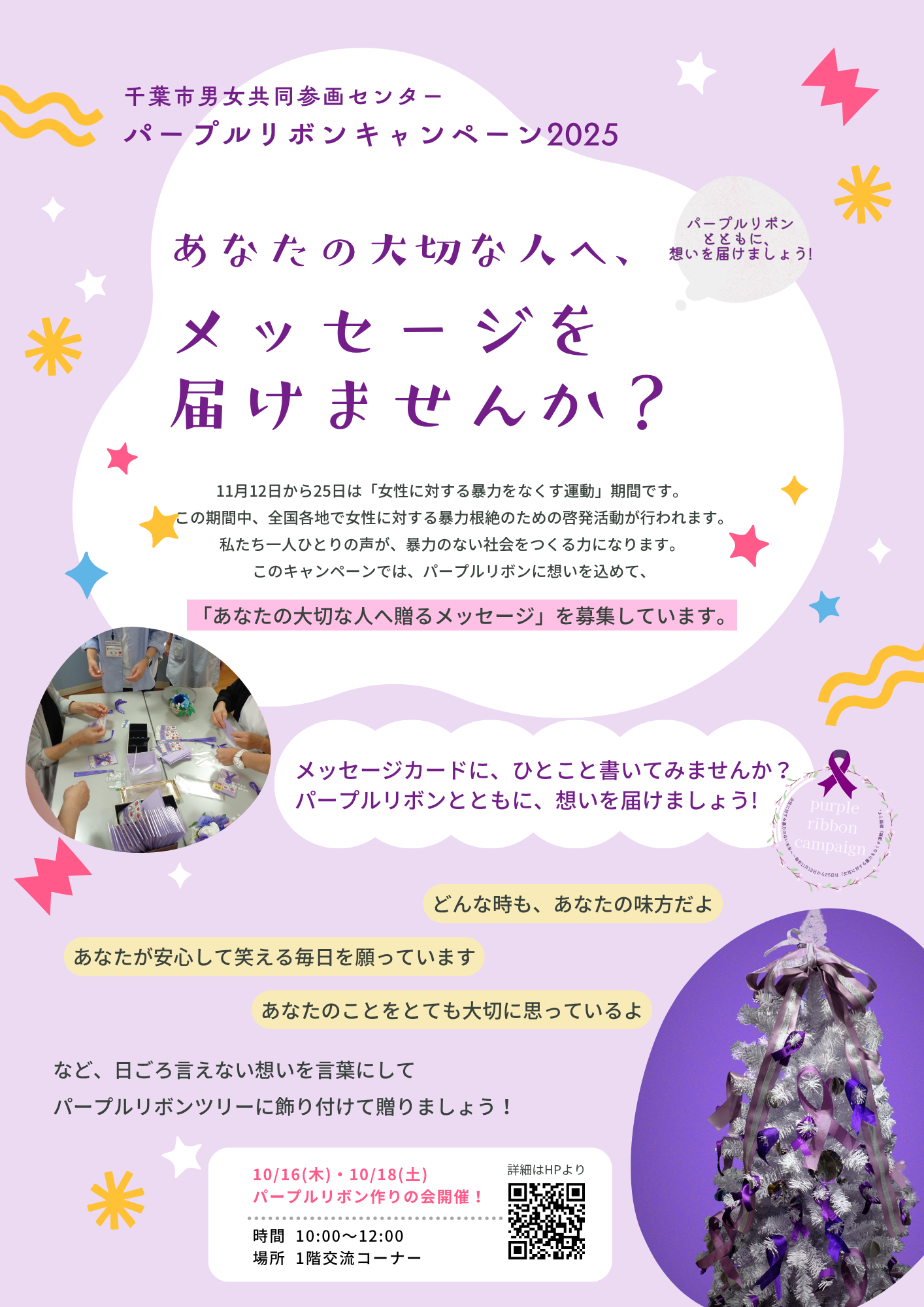 また「あなたの大切な人へ送るメッセージ」を募集しております。メッセージカードにひとこと書いてパープルリボンとともに想いを届けてみましょう!