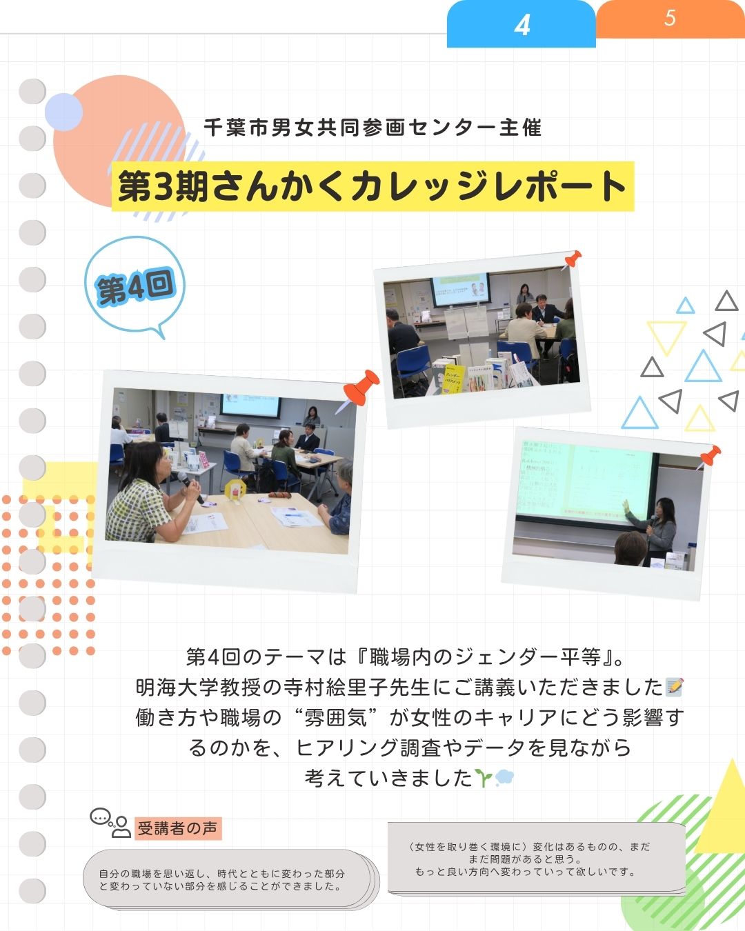 第3期は「ジェンダー視点から生活を見つめ直す」をテーマに、──家庭・学校・仕事──に潜むアンコンシャスバイアスやその対処法について、皆で学びを深めます。千葉市のジェンダー平等を目指して一歩を踏み出しましょう!