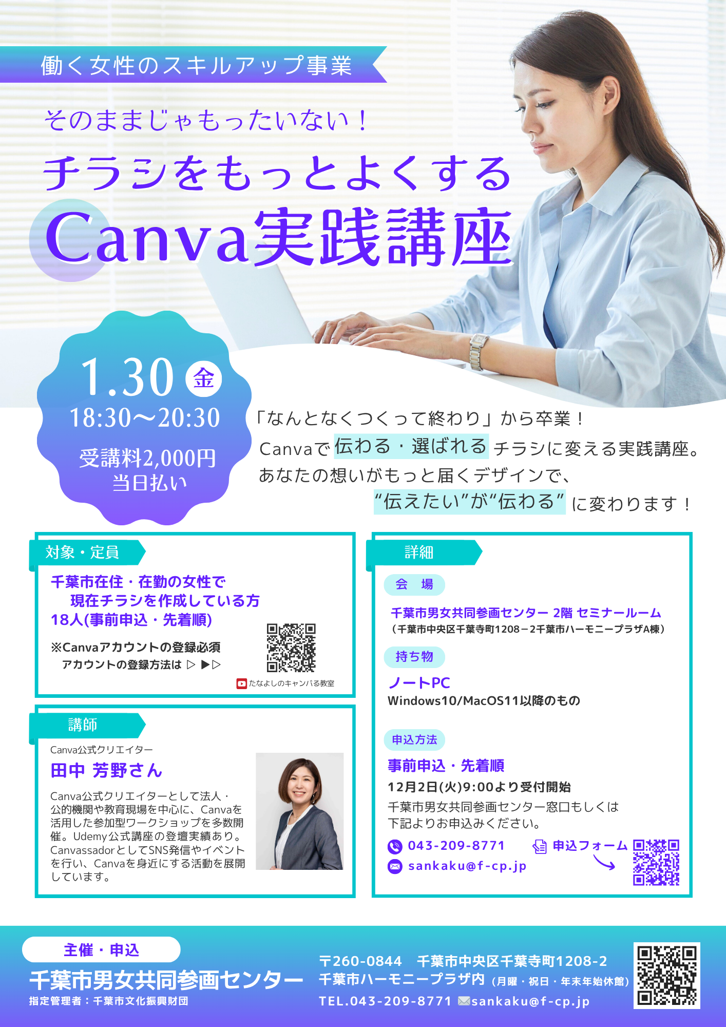 働く女性のスキルアップ事業 「そのままじゃもったいない!チラシをもっとよくするCanva実践講座」