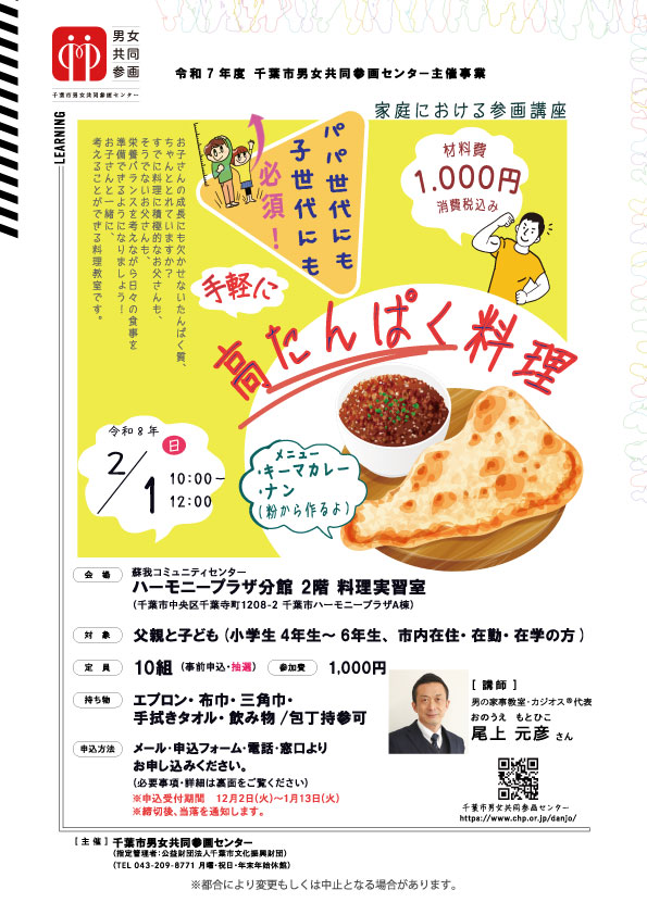 家庭における参画講座 「パパ世代にも子世代にも必須!手軽に高たんぱく料理」